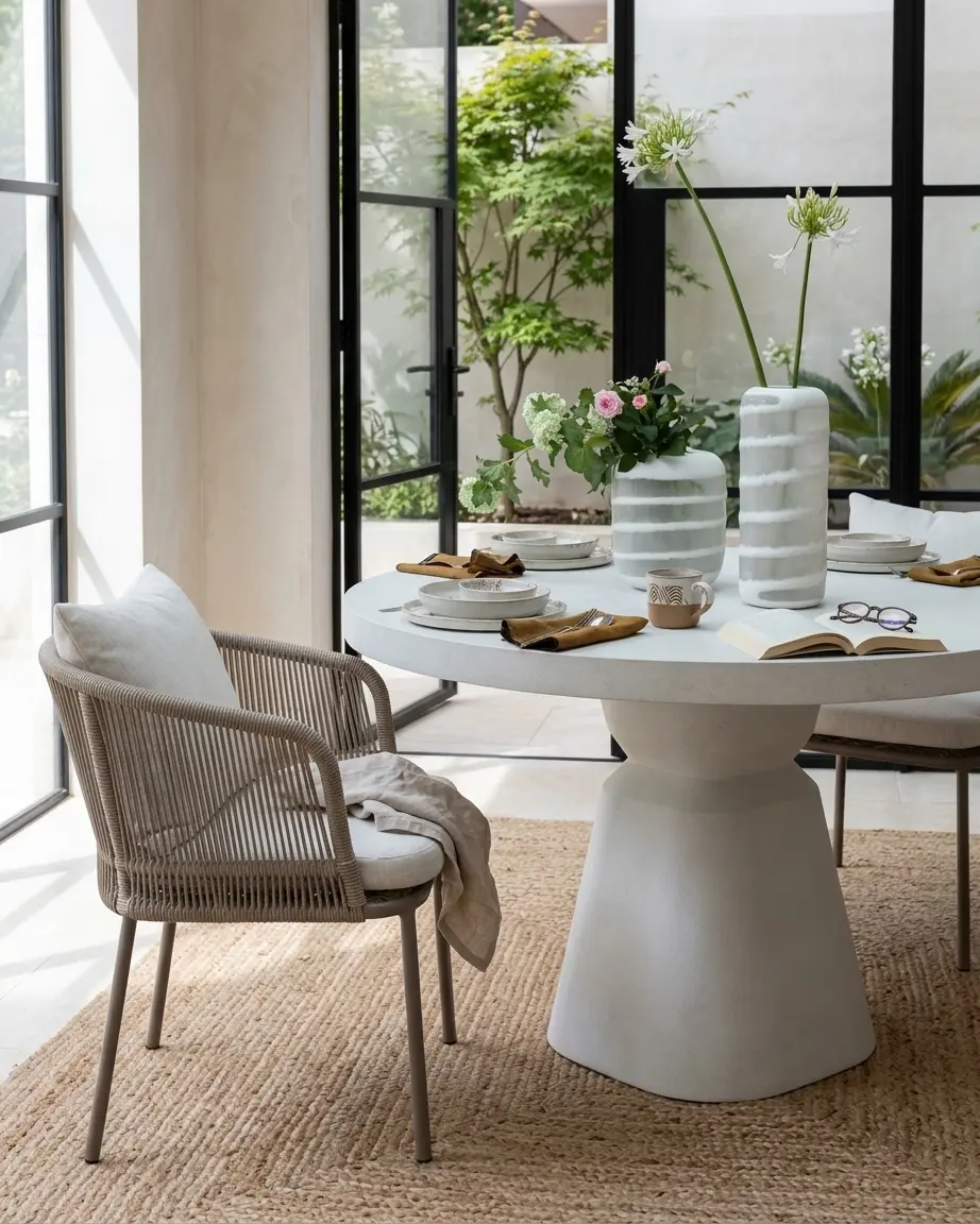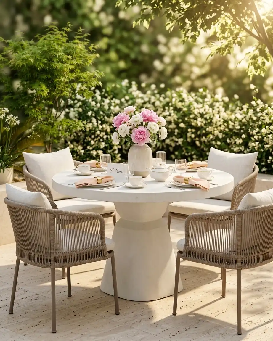 Luxury outdoor dining set by Craftnika is designed to create elegant and comfortable outdoor dining experiences. The Alvero Outdoor Dining Set includes a premium table paired with ergonomically designed chairs, making it ideal for patios, gardens and terrace spaces.