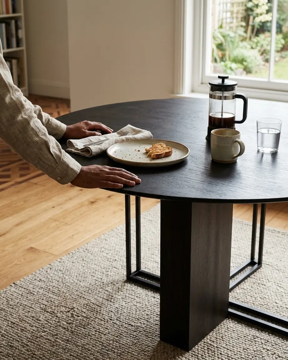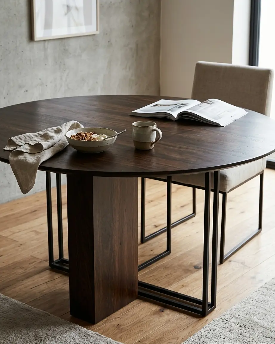 Crafted from high-quality solid wood, this dining table offers durability along with a rich premium finish. Its round structure allows comfortable seating and encourages a more connected dining experience.