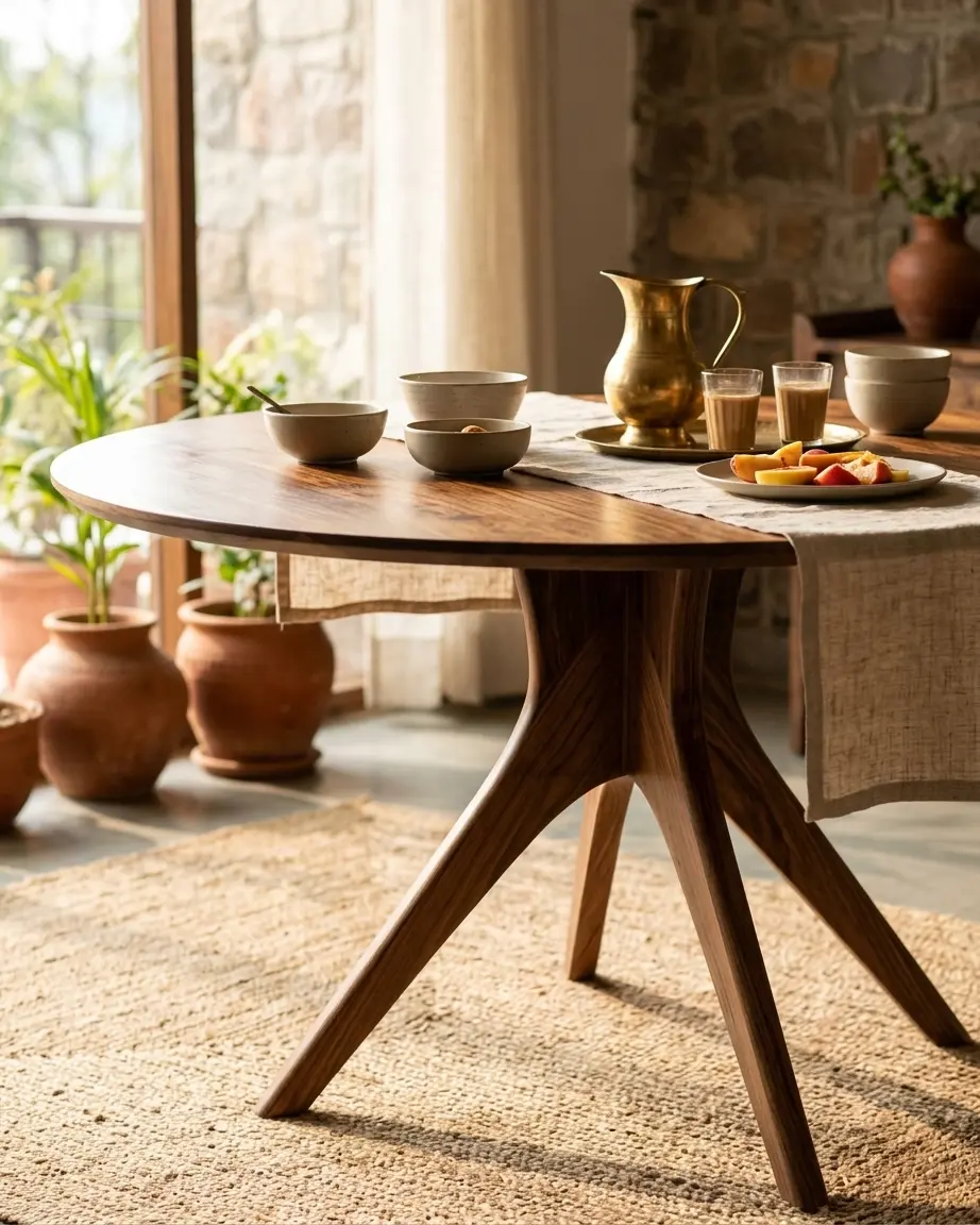Luxury dining table by Craftnika is designed to bring warmth and elegance into modern dining spaces. The Rovano Luxury Dining Table features a round wooden top paired with a sculpted base, creating a refined and contemporary look.
