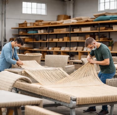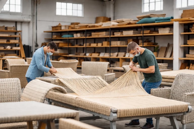 We use Grade-A Teak, powder-coated aluminum, UV-resistant synthetic wicker, and quick-dry foams designed specifically for outdoor longevity.